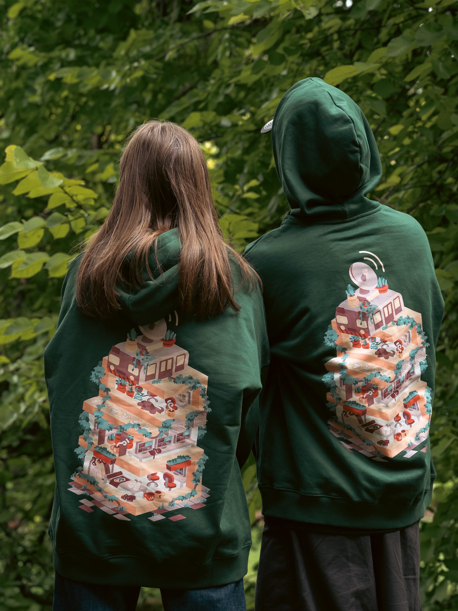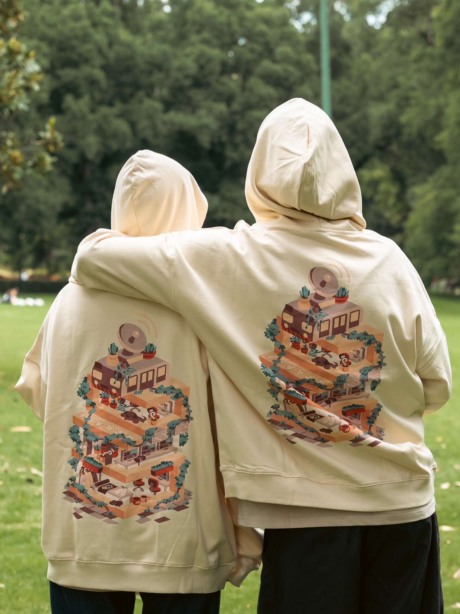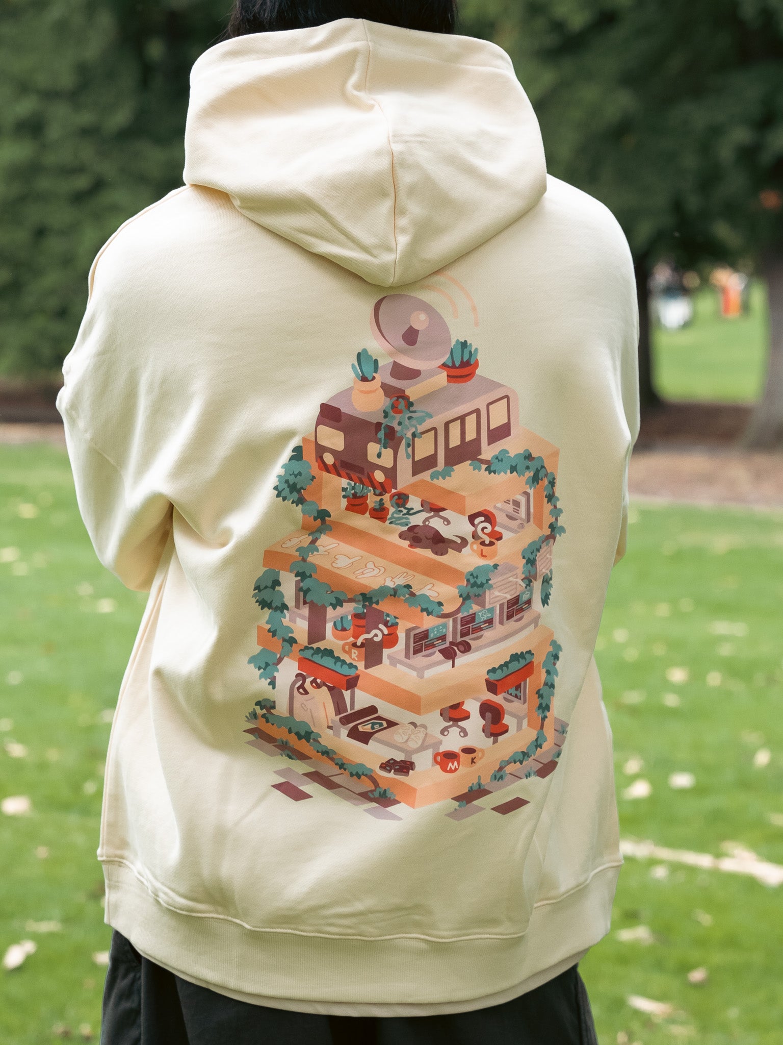 Get this high-quality hoodie - given the thumbs up by Robin, Jack and Lexi. With the vibrant EmKay office design printed on the back, and EmKay logo embroidered on the front; this hoodie comes in black, beige, and green and is guaranteed to keep you warm, comfortable.